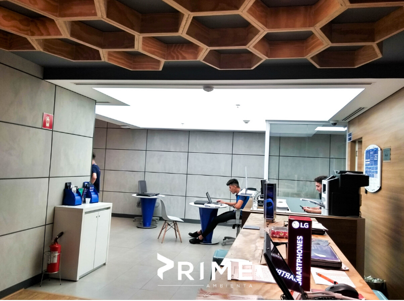 Ambientes ruidosos tiram o charme de qualquer espaço. A tela tensionada, graças à sua estrutura, pode abafar sons indesejados e contribuir para a qualidade acústica. Isso sem abrir mão da beleza, já que a superfície aceita cores, texturas e iluminação, um diferencial em auditórios e restaurantes.